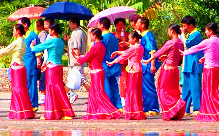 泼水节源于印度,曾经是婆罗门教的一种宗教仪式。其后,为佛教所吸收,经缅甸传入云南傣族地区。泼水节为傣历新年的庆祝活动,一般在阳历4月13号-4月15日之间。届时,人们先至佛寺浴佛,然后互相泼水,用飞溅水花表示真诚的祝福。